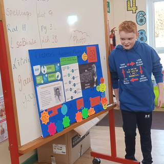 Monday 14th November was National Diabetes Day. 6th class had a 'blue' Day to raise awareness of the condition. One of our pupils gave a very informative and thought provoking presentation on living with Type 1 diabetes.