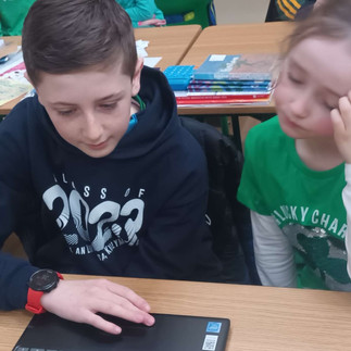 As part of Seachtain na Gaeilge some of our senior students paired up with 2nd class to do some paired reading. They used the Léigh Anois online banded reading programme and they all enjoyed it immensely.