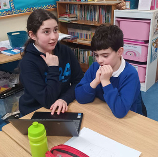 Thug na daltaí ó rang a sé cuairt ar rang Ms Campbell agus léigh said leabhair beag gaeilge le chéile. Bhain siad an-taitneamh as.